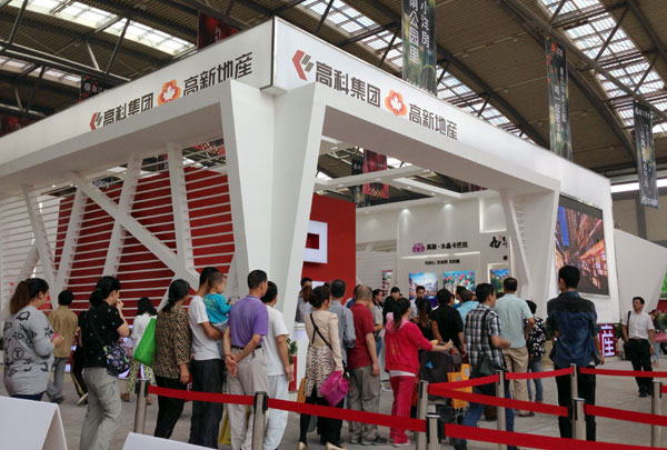 此次高新地产展厅的造型设计采用了内发光软膜材质和极具创意的造型设计闪亮全场,是整个展会独一无二的“发光”设计,使整个高新地产展厅成为此次展会独树一帜的明星。吸引了大批参会人员到访及对产品项目的问询。